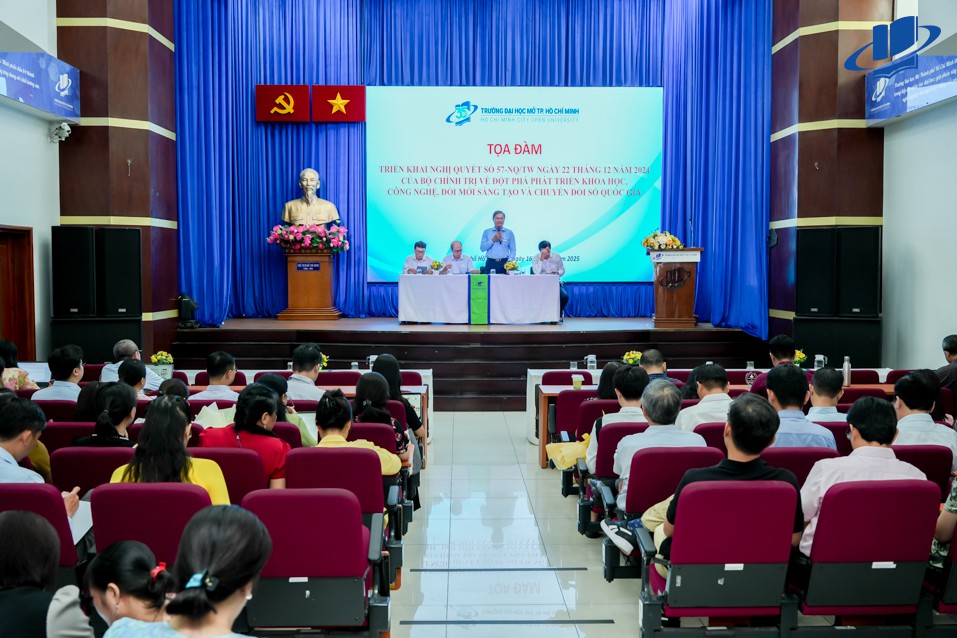 Sáng ngày 16/5/2025, tại Hội trường 202, cơ sở 35 – 37 Hồ Hảo Hớn, Quận 1, Trường Đại học Mở TP. Hồ Chí Minh tổ chức Tọa đàm triển khai Nghị quyết số 57-NQ/TW ngày 22/12/2024 của Bộ Chính trị về Đột phá phát triển khoa học, công nghệ, đổi mới sáng tạo và chuyển đổi số quốc gia. Tọa đàm được tổ chức trong bối cảnh các địa phương trên cả nước đang khẩn trương, quyết liệt xây dựng và triển khai kế hoạch hành động thực hiện Nghị quyết 57-NQ/TW Chính phủ nhằm thúc đẩy phát triển mạnh mẽ kinh tế – xã hội của các địa phương trong kỷ nguyên vươn mình của đất nước.